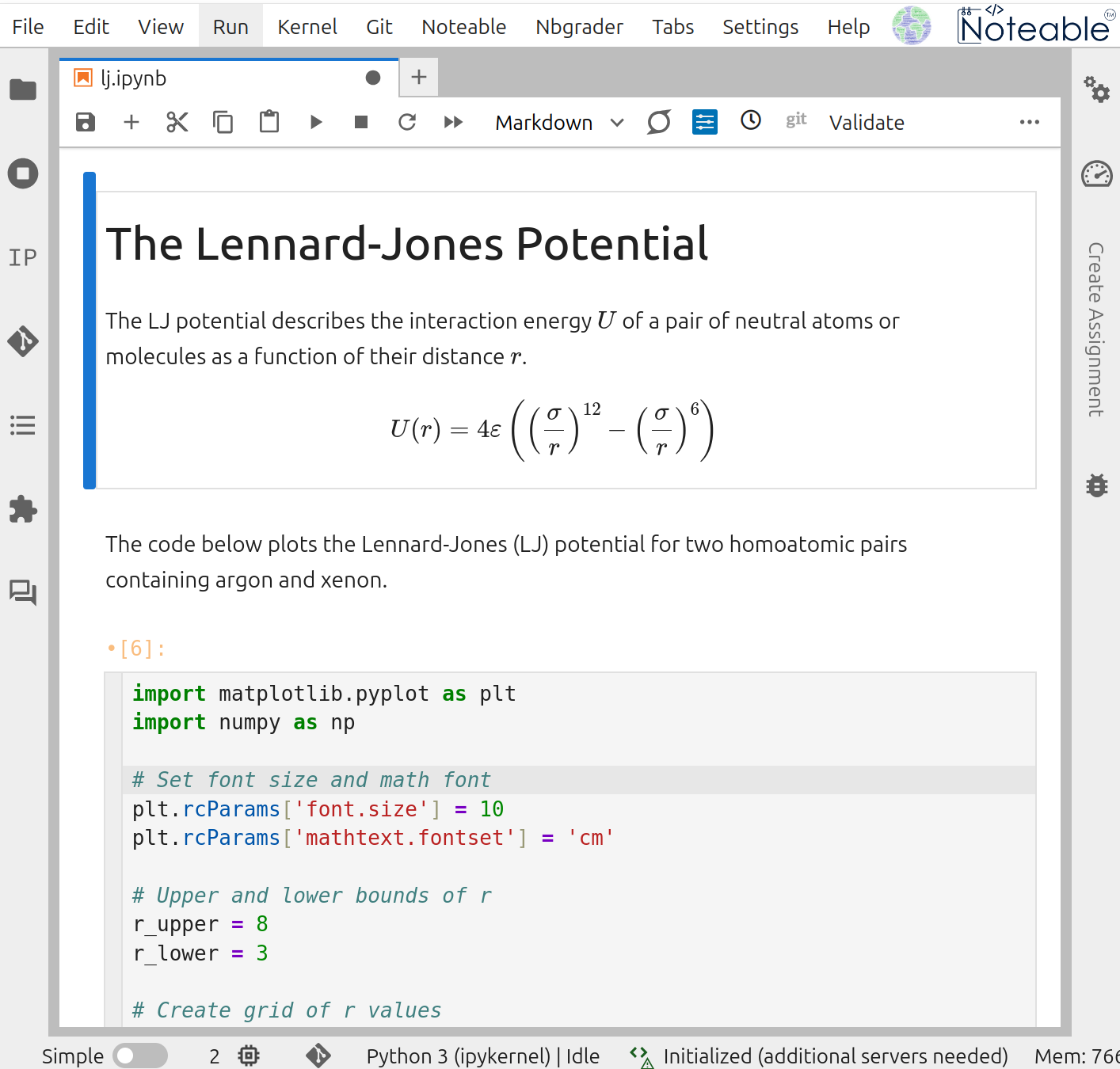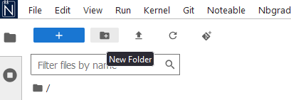 Close all of your Noteable browser windows. Your folders and files are saved on the Noteable server. You can reconnect to the server and see your folders and files by clicking again on the Noteable link on the CH12004 Moodle page.