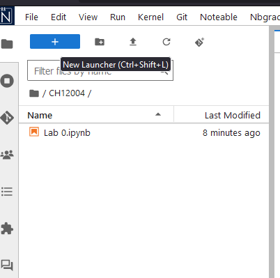To make a new notebook in this directory, simply click the blue + button to make a new Launcher.